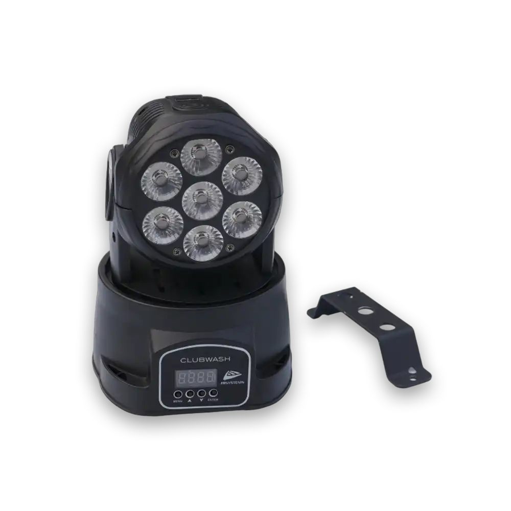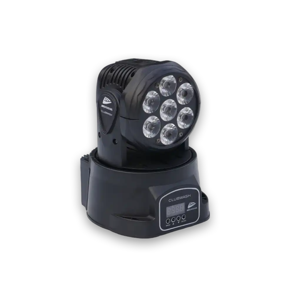 Mit verschiedenen Betriebsmodi, darunter DMX-Steuerung über 5, 9 oder 15 Kanäle, eigenständiger Betrieb mit Tonaktivierung durch das eingebaute Mikrofon und die Möglichkeit zur Synchronisation von Lightshows im Master/Slave-Modus, bietet der Clubwash Moving Head maximale Flexibilität.