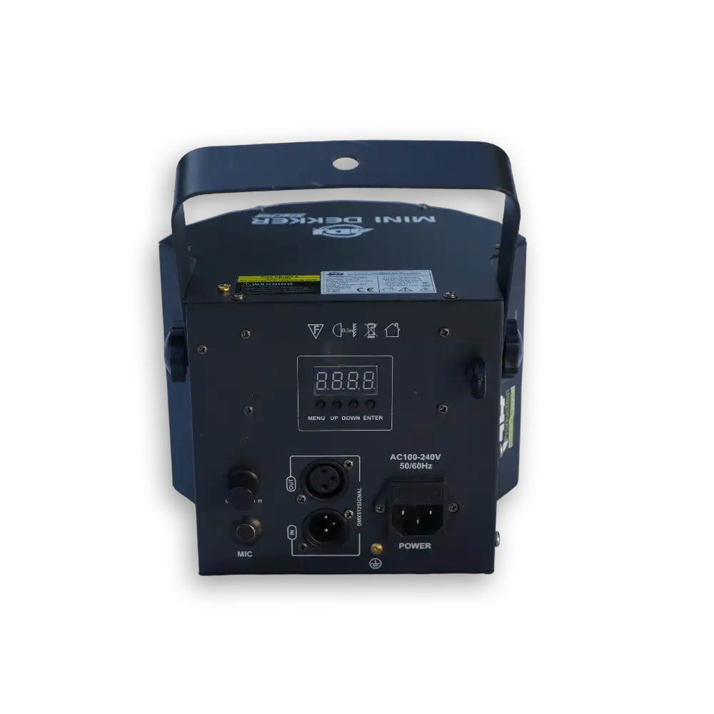 Die Bedienung des Mini Dekker ist denkbar einfach. Mit einem einfachen Schalter können Sie zwischen verschiedenen Betriebsmodi wählen, darunter automatisierte Programme, Sound-to-Light-Modus (musikgesteuert) und Master/Slave-Modus. Dies ermöglicht es Ihnen, den Lichteffekt ohne komplizierte Einstellungen sofort in Betrieb zu nehmen.