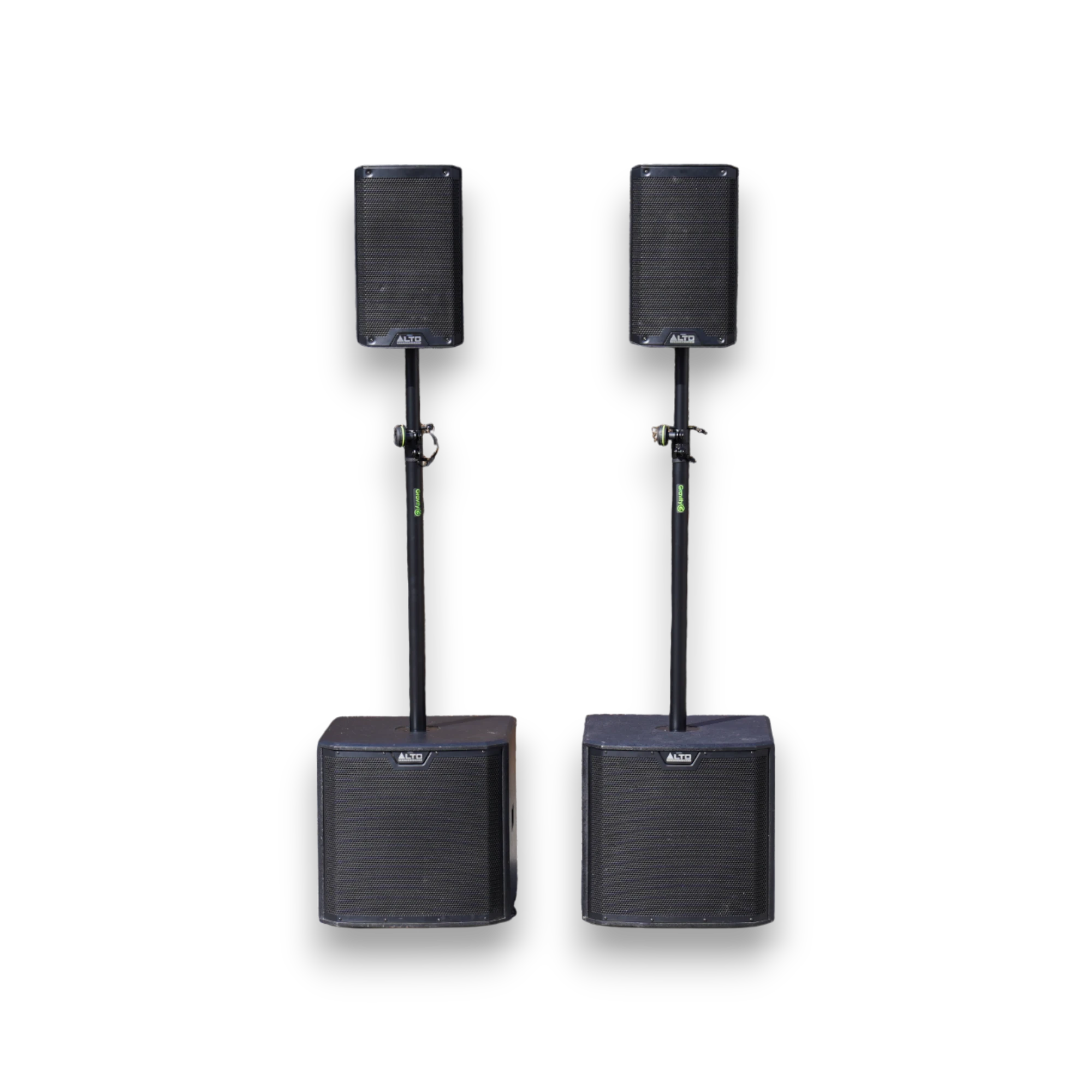 Unsere ALTO PA-Anlage kombiniert den kraftvollen TS312S Subwoofer mit den präzisen TS208 Hochtönern und liefert damit einen ausgewogenen, druckvollen Sound – ideal für Partys, Live-Musik, Hochzeiten und Konzerte mit bis zu 150 Personen.