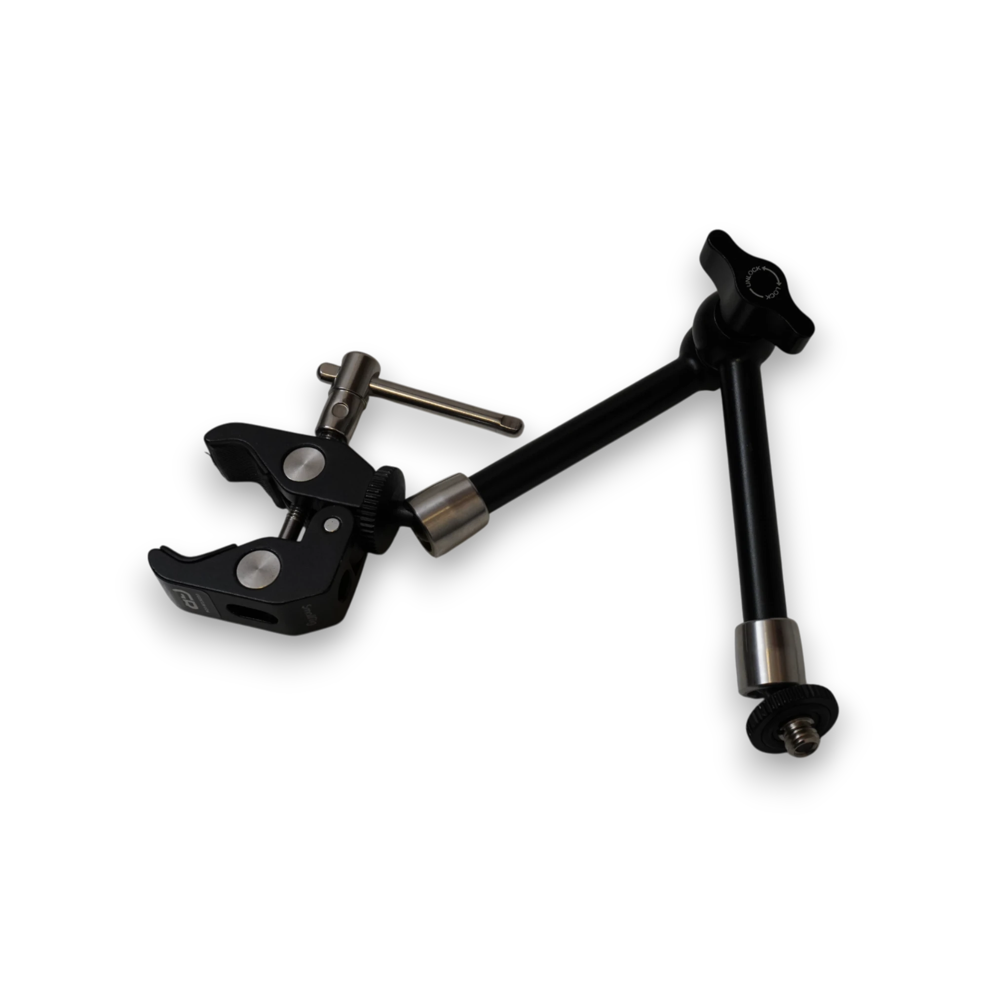 Der Arm ist mit 1/4-Zoll– und 3/8-Zoll-Gewindeanschlüssen ausgestattet, sodass er mit einer Vielzahl von Zubehörteilen kompatibel ist. Die Schnellspann-Verschlüsse ermöglichen eine schnelle und einfache Anpassung der Position ohne viel Aufwand. Zusätzlich sorgt der gummierte Griff für eine bequeme Handhabung und sicheren Halt, auch bei längeren Einsätzen.